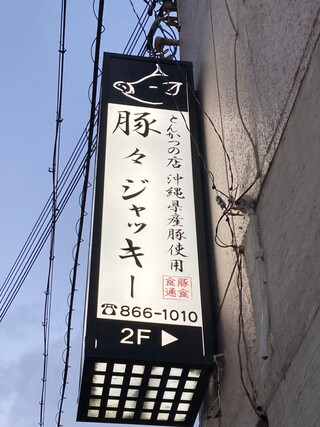 しばし休憩の後、夕食に「豚々ジャッキー」に向かいました。